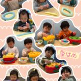 「給食は何が好きだった?」の問いかけに「カレー。」「ハンバーグ。」「スープ。」とたくさんのメニューを答えてくれました。「お水遊びも楽しかった。」や「英語遊び、おもしろかった。」など保育園で一緒に遊んだこと、楽しかったこと、嬉しかったことをお友だちや保育者と楽しくお話しながら、メダルを完成させました。