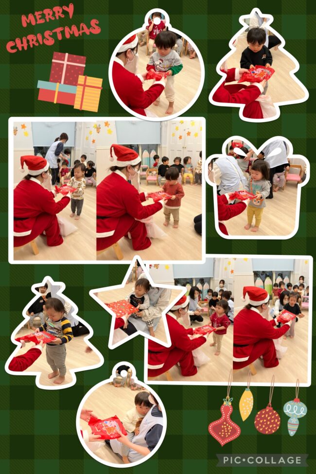そしてドキドキしながらサンタさんからプレゼントを受け取り、みんなとても嬉しそうにプレゼントを抱き締めていました。