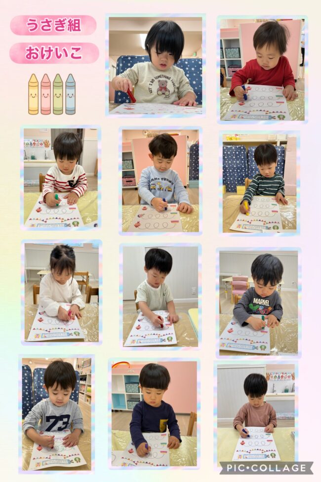 しっかりクレヨンを持ちながらゆっくり丁寧に仕上げることができ、とても満足そうな表情の子どもたちでした。