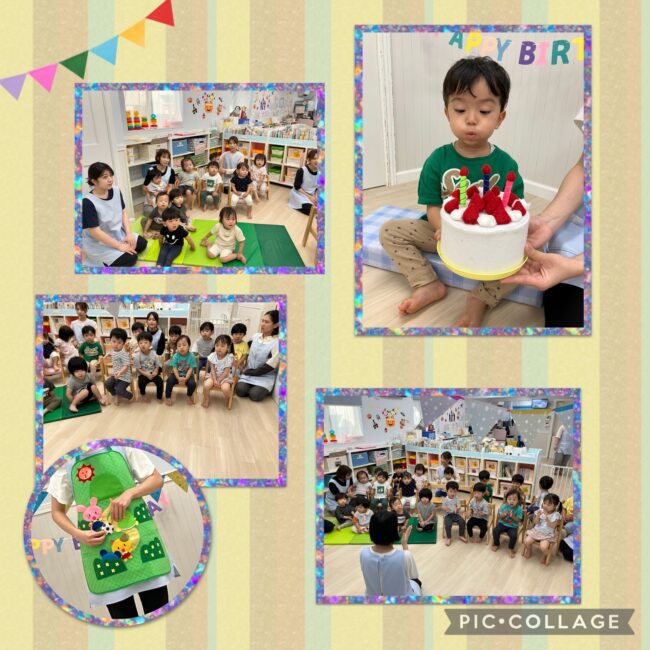 10月のお誕生会がありました。お誕生日のお歌を歌いながらみんなでパチパチと拍手をしてお祝いをすることができました。