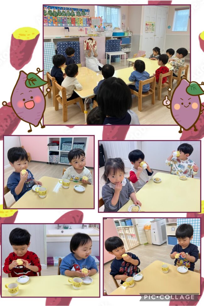 「甘くて美味しいね」や「また行きたいね」と自分たちで採ったさつまいものおやつはいつもより美味しく感じ、たくさんおかわりをしました。