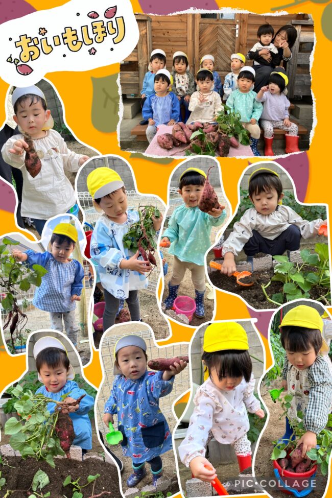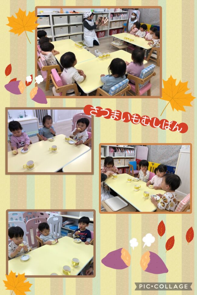 後日、おやつの時間にさつまいも蒸しパンが出てくると「みんなで採ったさつまいもだ!」と嬉しそうにお話をしていました。