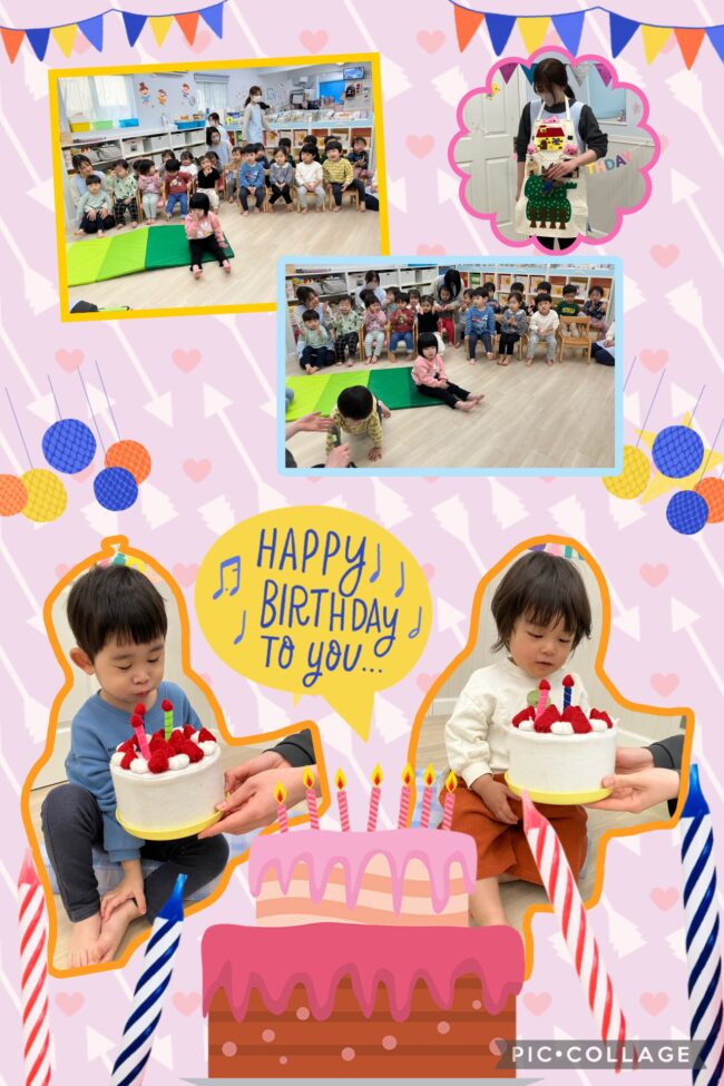 りす組のお友だちは王冠カードのプレゼントをもらったり、大きなケーキの登場ににっこり♪とても嬉しそうでした。