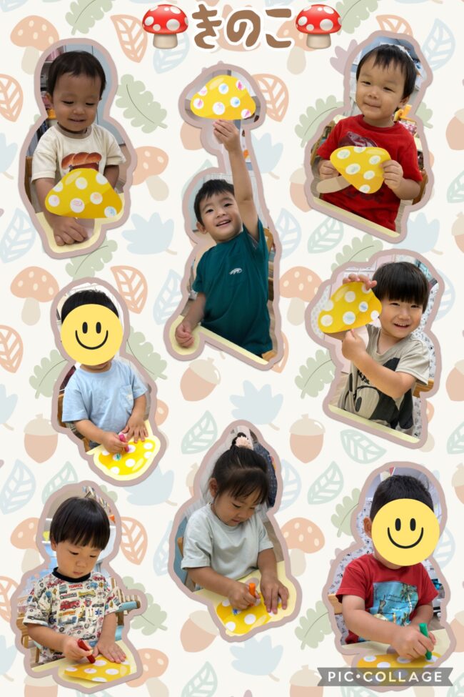 今週は、壁面製作で【きのこ】を作りました。