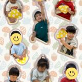 小さな丸の中を狙って慎重に貼り、白い丸からはみ出ると貼り直すお友だちもいて驚きました。様々な遊びを繰り返し経験する中で、子どもたちの空間配置、空間認知力や指先の操作性が身についてきているのを感じました♪
