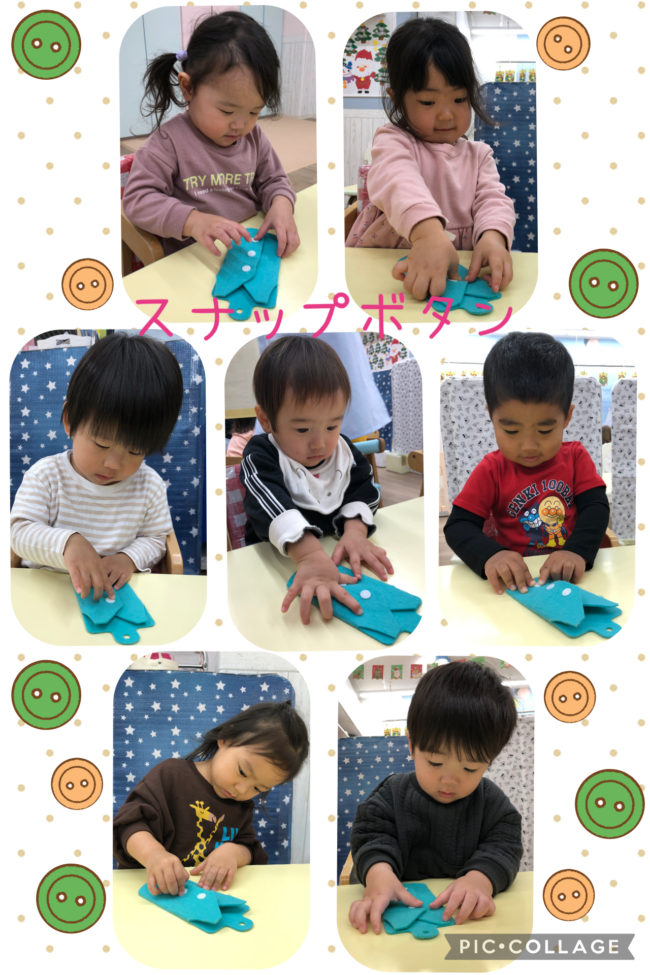 その中で、【ボタンはめ】遊びを紹介いたします。こちらの遊びは、クラス共通の遊びとなります。