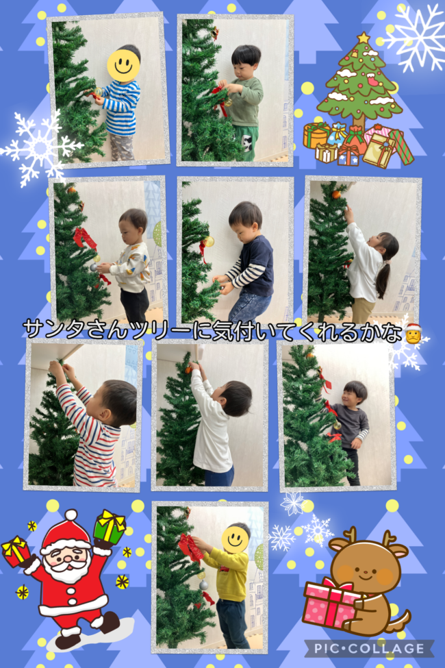サンタさんがこのツリーに気が付いて、プレゼントを持ってきてくれるかな?と、子どもたちは期待に胸を膨らませながら飾り付けをしていました♪