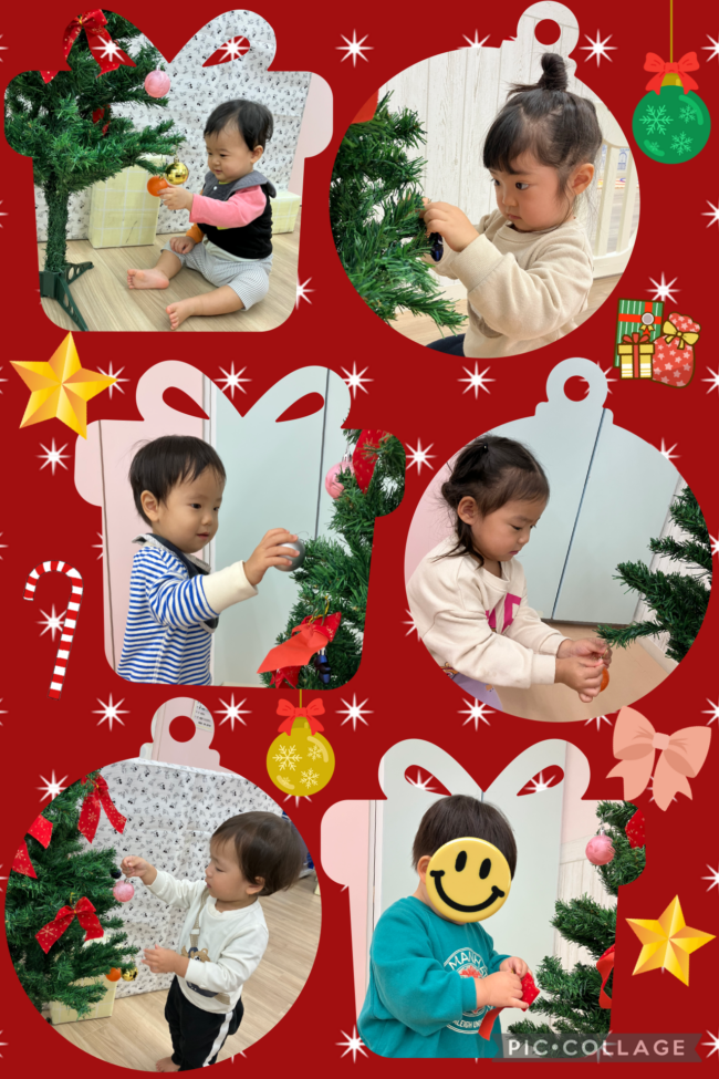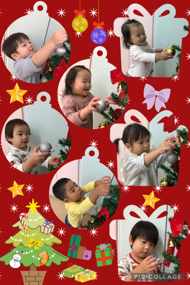 クリスマスに向けて、園のクリスマスツリーにオーナメントを飾り付けていきました!