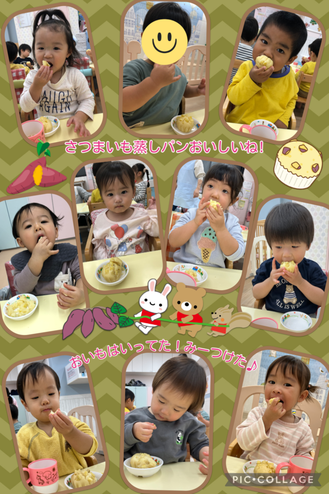 おやつでさつまいもの蒸しパンが出ると、サイコロ状のさつまいもだけを取って食べてみたり、大きなお口で頬張り、秋の味覚を堪能していました♪