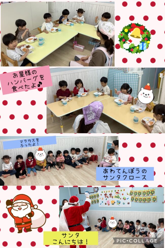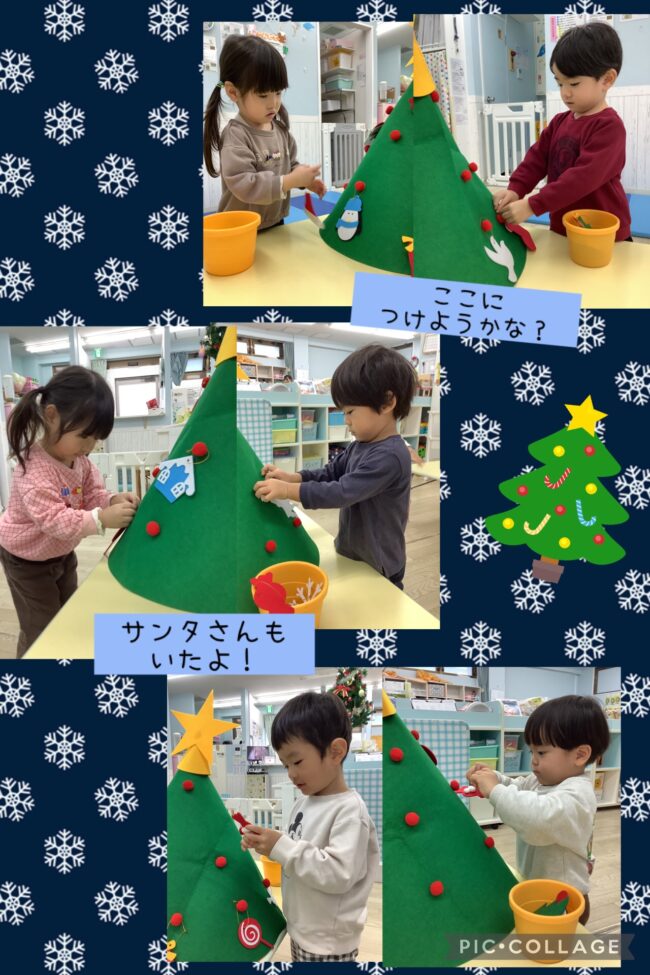 待ちに待ったクリスマスイベント。お部屋の中に作った製作物などクリスマスの飾りが増えてくると「プレゼント〇〇もらうの」ととてもクリスマスを楽しみにしていた子どもたち。