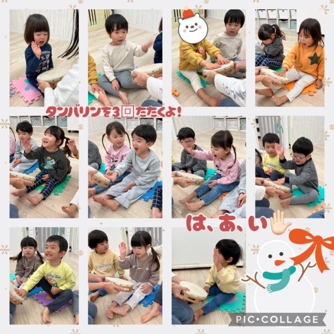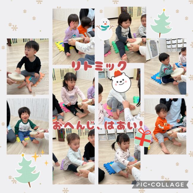 『おはよ』のお歌では、「1.2の3でメリークリスマス!」と歌詞を変えて歌ったり、ジングルベルの歌ではリズムに合わせてお部屋を歩きました🌲