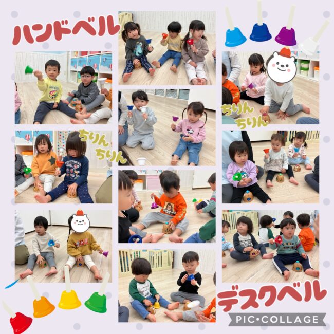 また、ハンドベルやデスクベルが出てきてかおる先生が『きらきら星』を演奏してくれると興味津々に音色を聞いていた子どもたち。